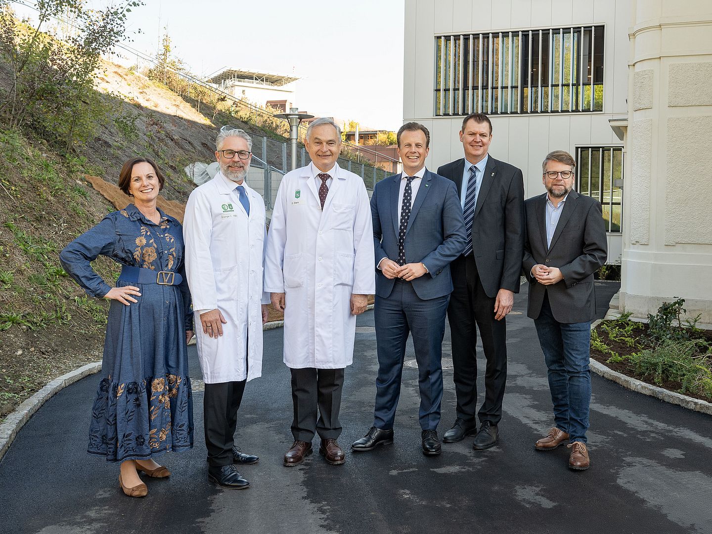 Heute fanden sich zur feierlichen Eröffnung des Ausbaus der Stroke Unit am Grazer Uniklinikum neben dem Landesrat für Gesundheit, Pflege und Sport, Dr. Karlheinz Kornhäusl, auch KAGes-Vorstandsvorsitzender Univ.-Prof. Ing. Dr. Dr.h.c. Gerhard Stark, der KAGes-Vorstand für Finanzen und Technik, Mag. DDr. Ulf Drabek, MSc MBA, der Ärztliche Direktor des LKH-Univ. Klinikum Graz, Ass.-Prof. Dr. Wolfgang Köle, Johannes Schwarz, Landtagsabgeordneter und Klubobmann, sowie der Hausherr der Univ.-Klinik für Neurologie, Klinikvorstand Univ.-Prof. Dr. Christian Enzinger, und Pflegeleitung Esther Trampusch, BSc, ein.