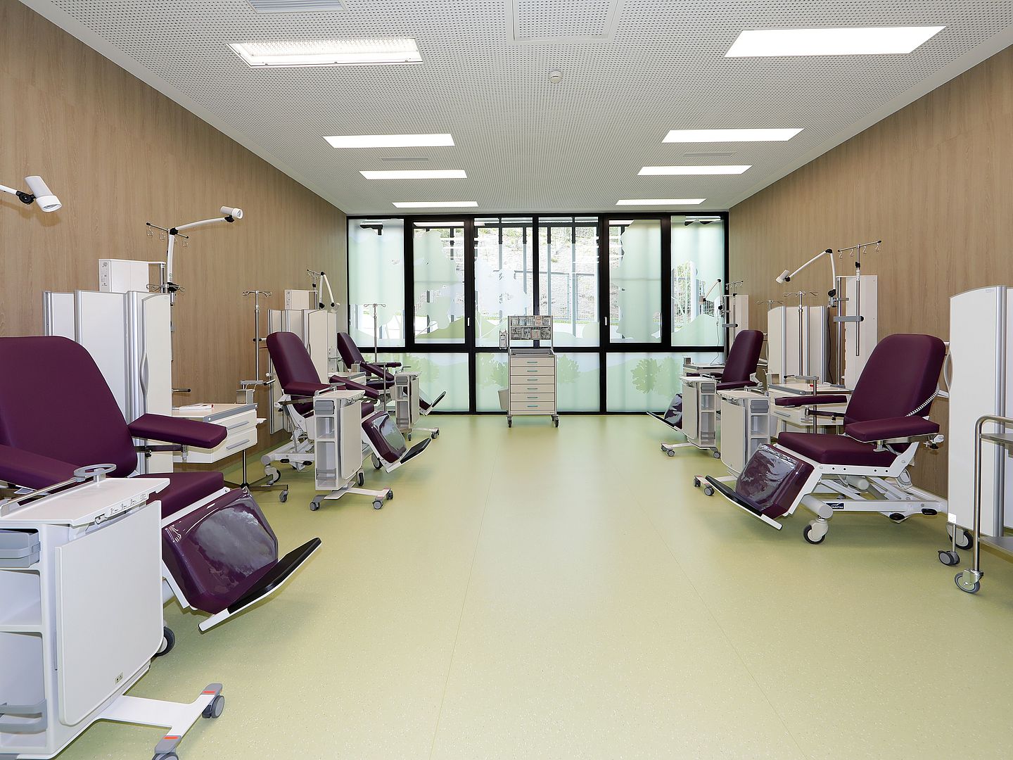 Mit dem zweigeschoßigen Zubau an der Nordseite des denkmalgeschützten Gebäudes der Univ.-Klinik für Neurologie sowie der Adaptierung bestehender Bereiche im ersten Obergeschoß ist die neue Stroke Unit nun eine der größten in Österreich. Ca. 1.300 m2 stehen an zusätzlicher Fläche zur Verfügung. Die Bettenanzahl wurde von bisher sechs auf aktuell zehn erweitert und für die ambulante Infusionstherapie stehen ab sofort fünf eigene Therapieliegeplätze zur Verfügung. Die lichtdurchfluteten Räume – viel Tageslicht und hochwertige Beleuchtung sorgen für ein helles, freundliches und angenehmes Raumgefühl – sind nicht nur nach letztem Stand der Technik ausgestattet, sondern liegen auch in unmittelbarer Nähe zur Intensivstation.